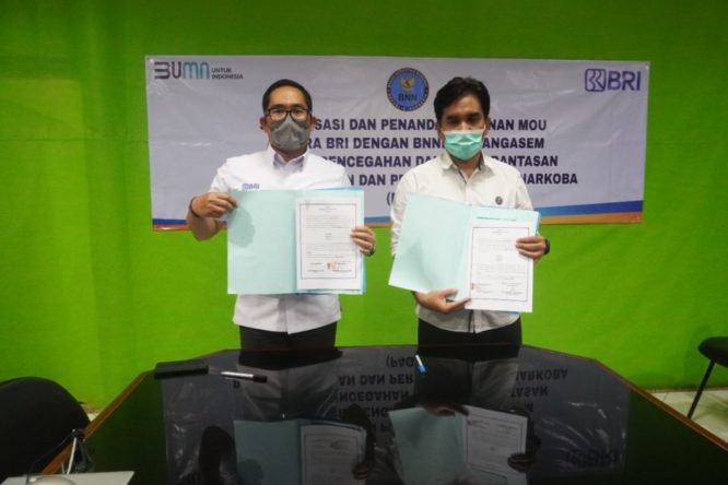 KARANGASEM, Balifactualnews.com – BNNK Karangasem bekerjasama dengan Bank BRI Cabang Amlapura dalam Pencegahan dan Pemberantasan Penyalahgunaan dan Peredaran Gelap Narkotika dan Prekursor Narkotika. Keseriusan kerjasama tersebut tertuang dalam sebuah Nota Kesepahaman (MoU) yang dilaksanakan pada Senin(21/2/2022) bertempat di Kantor BRI Cabang Amlapura Jalan Gajah Mada Karangasem.