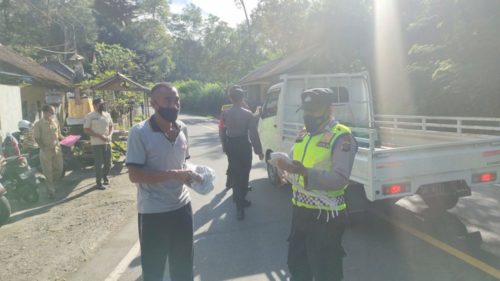 Cegah Penyebaran Virus Mutasi Corona, Polres Karangasem Bagi Masker dan Edukasi Masyarakat Desa Pempatan Rendang