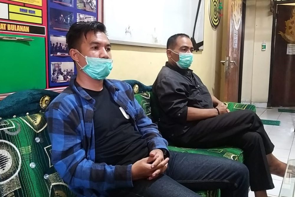 SH, tersangka pembuat Suket SWAB Palsu (kiri) dan B (kanan)  tersangka pembawa suket palsu saat menjalani pemeriksaan di Mapolres Karangasem.