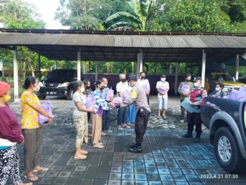 Polsek Abang Salurkan 200 Paket Sembako Bekerjasama Dengan Komunitas Peduli Bangsa