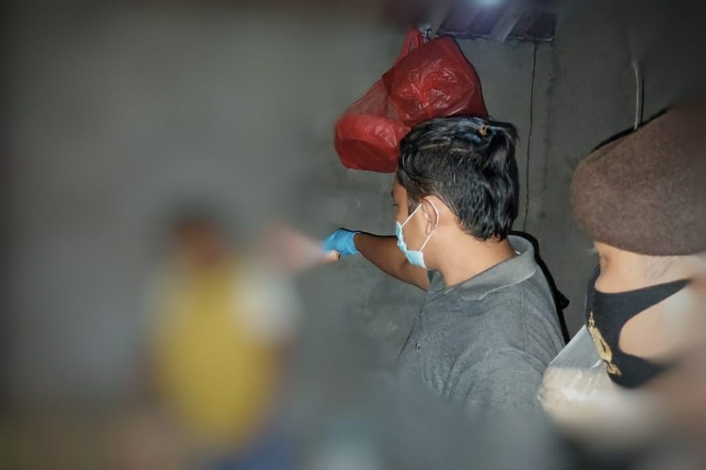 Petugas Polsek Abang saat melakukan identifikasi jenazah korban Ni Luh Switi yang masih tergantung di…
